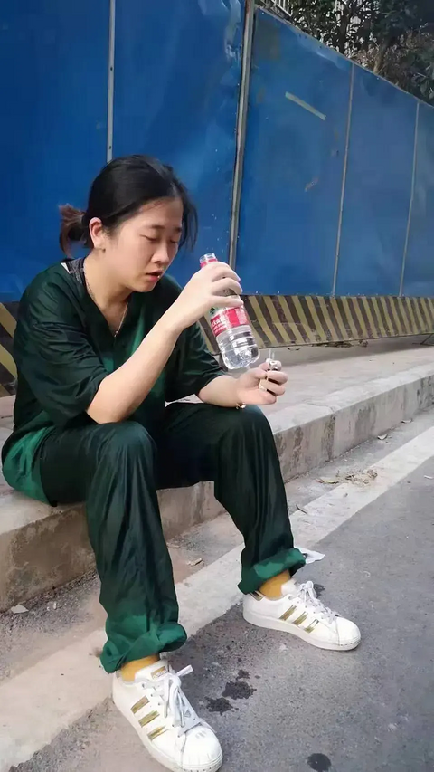 这是最美重庆妹儿 网友拍到一位在43度高温下,为居民做核酸的医护服务人员,坐在路边休息的照片?因为在40多度的天气下长时间穿防护服,整个衣服基本都湿透了!白水下藿香正气液,以防中暑 由衷的感谢她!