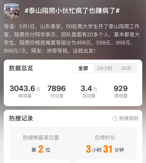 “泰山陪爬”再上热搜,陪爬员这行真的赚疯了?
