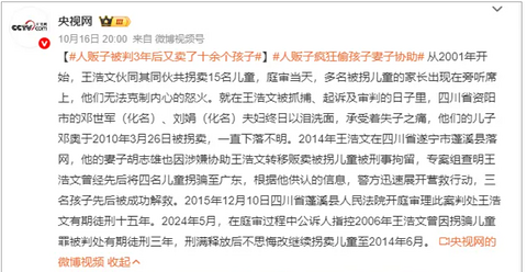 10月16日,央视曝光了一条关于人贩子的新闻,深深地刺痛了所有人的心。贩子王浩文,这个早在 2006 年就因拐骗儿童罪被判 3 年有期徒刑的人,刑满释放后不仅没半点悔改,反而变本加厉,在 2008 年到 2014 年这几年里,又接连拐卖了十余个孩子,把一个个家庭拖进了骨肉分离的深渊。