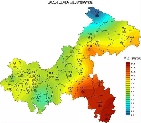 11月7日12时59分迎来“立冬“”节气10点,重庆多地气温不足10℃,渝北仅7.3℃,最冷的城口只有1.6℃较昨日猛跌了近13℃