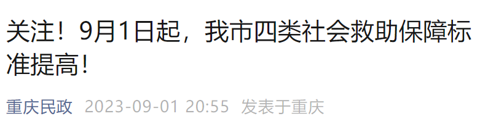 来源:重庆本地宝 近日 市民政局、市财政局发布通知 提高重庆城乡低保、特困人员救助供养 等四类社会救助保障标准 调整后的标准从本月起执行