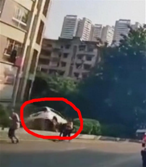 6月15日,重庆市綦江区发生一起事故。一辆小车斜穿马路后,掉进路边小区负一层,砸中了一名居民。目前,辖区交警正在处理此事。 据网传视频显示,6月15日上午8时20分许,一辆白色小车从马路右侧径直向马路左侧驶去,冲出绿化带,掉落路边小区负一层。另一视角的视频中,该车侧翻在地,旁边有一名路人倒地。 白车冲下马路前画面(视频截图)