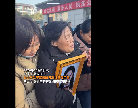 2024年11月1日晚,22岁安徽安庆市女大学生李某被前男友林某强杀害。两天后,潜逃中的林某强被警方抓获。2026年1月13日上午,安庆中院对此案作出一审判决:被告人林某强被判处死刑。李某的母亲林女士说,她等了这个结果439天,对一审判决结果是满意的。