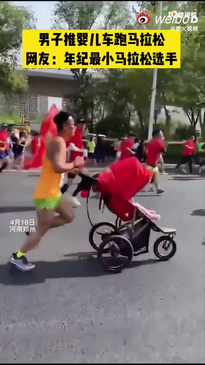 男子带宝宝推婴儿车跑马拉松:平时训练都带着她,一直在互动