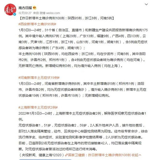 2022年1月4日,上海市、河南省郑州市、许昌市相继通报新增多个本土无症状感染者 重庆飞