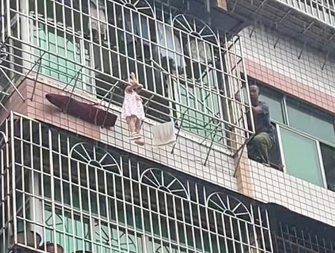女童命悬一线,3位好心人徒手爬5楼托举生命