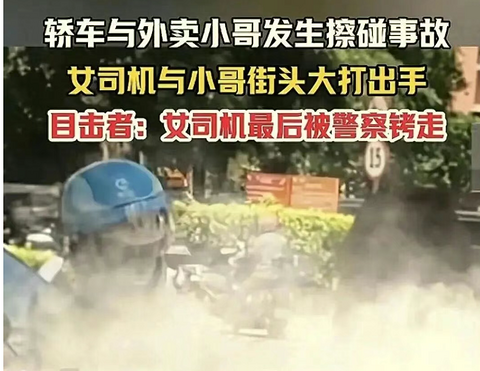 女司机穿高跟鞋开车剐蹭外卖员,双方大打出手,结局大快人心!