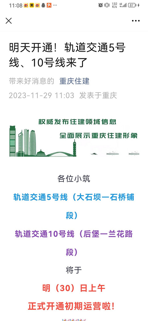 官宣了,轨道交通5号线中段和10号线剩余段明天通车运营