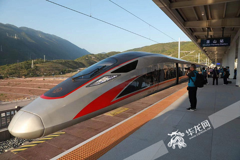 原来,它是一条世界罕见的“地铁式”高铁——郑渝高铁重庆段,是中国第一条桥隧比超98%的复杂险峻山区高速铁路。其总里程约184公里,其中,隧道近170公里,桥梁10.8公里,像平原那样的路基仅仅3.3公里。简言之,乘客超92%的路程都是在隧道里。 一起来看,这条铁路有多牛。 △ 6月13日,郑渝高铁试运行动车组到达巫山站。华龙网-新重庆客户端 首席记者 李文科 摄