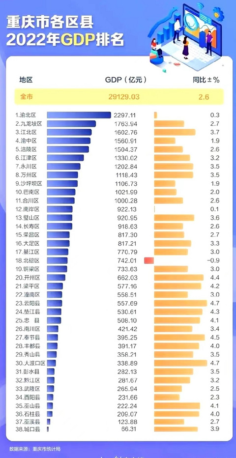 2022全重庆倒数第一,北碚不晓得能不能知耻而后勇
