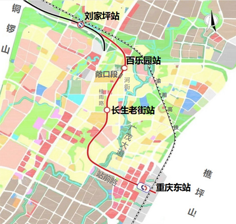 轨道交通6号线东延伸段平面示意图。市住房城乡建委供图 华龙网-新重庆客户端 发 华龙网-新重庆客户端3月28日15时讯(首席记者 董进)华龙网-新重庆客户端记者从重庆市住房城乡建委获悉,近日,重庆轨道交通6号线东延伸段正式开工。 重庆轨道交通6号线东延伸段位于南岸区茶园组团,线路起于重庆东站,止于既有的刘家坪站,全长6.79公里。 全线设站4座,新建3座车站,分别为重庆东站、长生老街站(原长生路