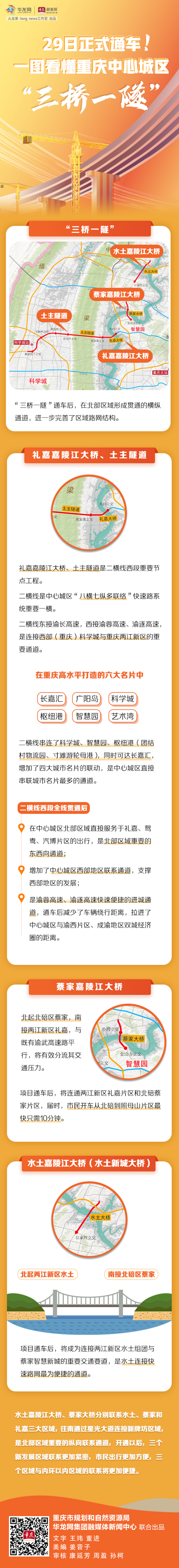 9月29日00:00,“三桥一隧”将面向社会正式开放车辆交通。水土嘉陵江大桥(水土新城大桥)、蔡家嘉陵江大桥、礼嘉嘉陵江大桥及土主中梁山隧道均可通行。“