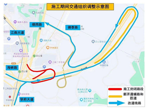 @车主朋友们!江南立交改造二期工程海峡路至烟雨路匝道封闭施工