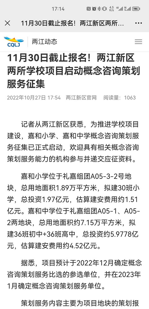 嘉和小学、嘉和中学概念咨询服务策划征集,有开建希望了?