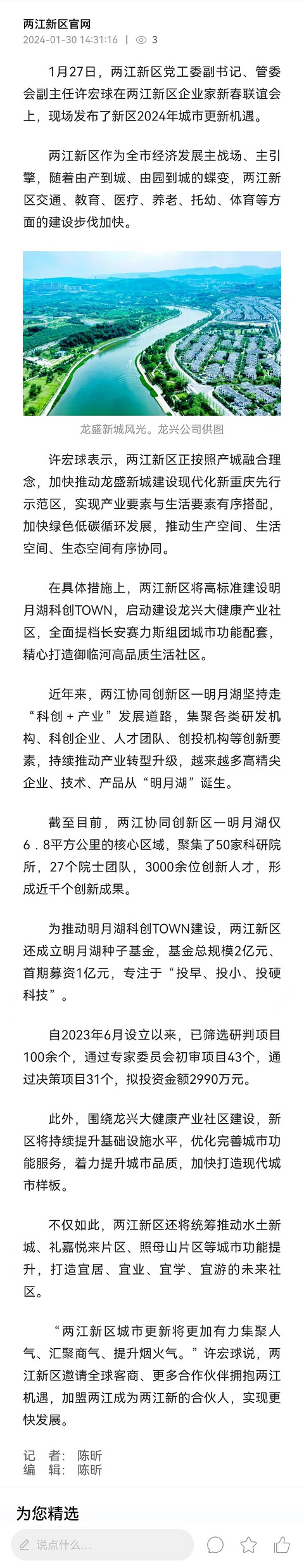 两江新区发布城市更新计划 以龙盛新城为核心打造现代化新重庆先行示范区