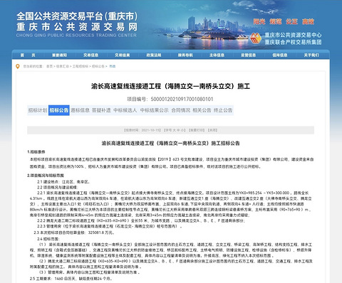 黄桷沱长江大桥(18号线三期过江通道)挂网招标了