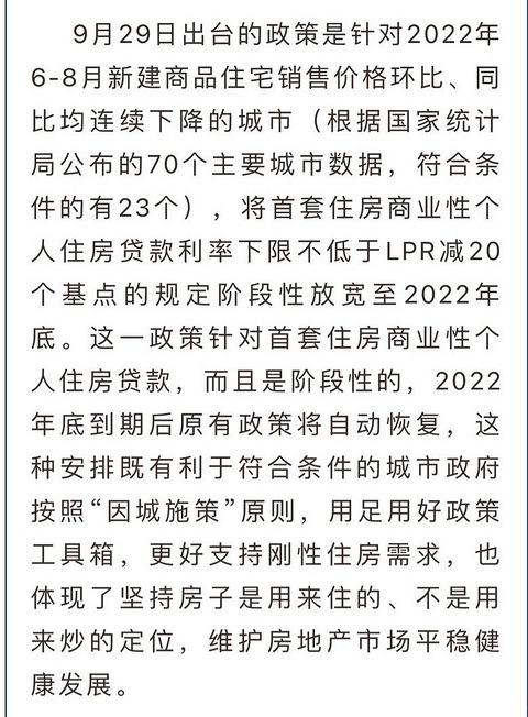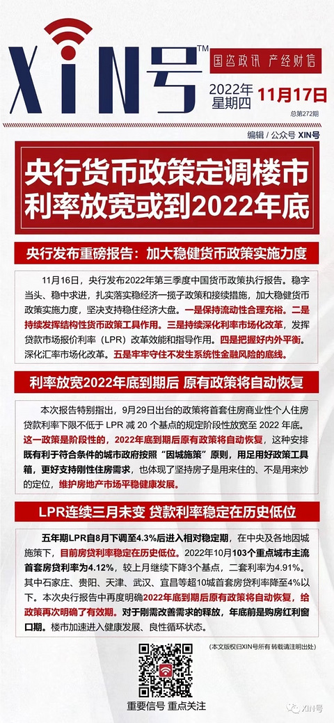 11月11日,人民银行、银保监会发布《关于做好当前金融支持房地产市场平稳健康发展工作的通知》。 通知涉及保持房地产融资平稳有序、积极做好“保交楼”金融服务、积极配合做好受困房地产企业风险处置、依法保障住房金融消费者合法权益、阶段性调整部分金融管理政策、加大住房租赁金融支持力度等6方面,共16条具体措施支持房地产市场平稳健康发展。 此次史无前例的新政推出,预示着房企生存环境迎来转变,通过融资输血,将