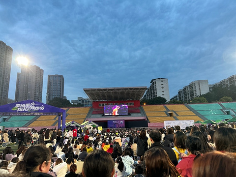 没抢到票,只能去旁边体育场看大屏幕,气氛非常热烈!