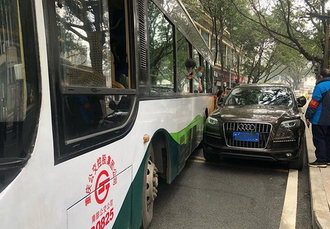 霸道的奥迪车把公交车站堵了