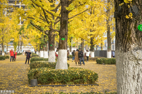 有一种诗意的美,叫重庆的秋天,因为它如烟花般短瞬即逝幸福广场在一阵微风中变得满地金黄,扇形的银杏叶纷纷扬扬被风吹落满地(才华已尽,反正就是很美) 除了银杏叶,还有喷泉;