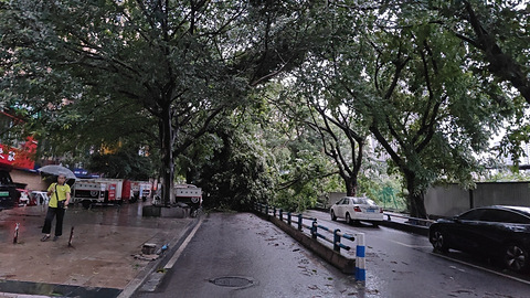 昨晚睡得早,到凌晨一点半就被震耳欲聋的雷声吵醒,站在阳台上看了一会暴雨,当时就想估计有的道路和车库又要遭淹了。今早出门还在想可能会有些路段积水车子不能通过,早点坐地铁走。南岸这边是坡地 道路倒是不容易积水,以为没什么问题,一转弯就看到吹断的树枝封了路,堵了几台公交车