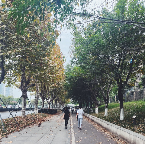 上班路上拍到的,现在路旁的树一半是绿色,一半是黄色,很有意境,