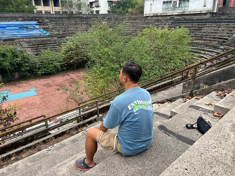 虽然这里杂草丛生,但是我坐在看台上,依然能感受到当年此起彼伏的雄起声!