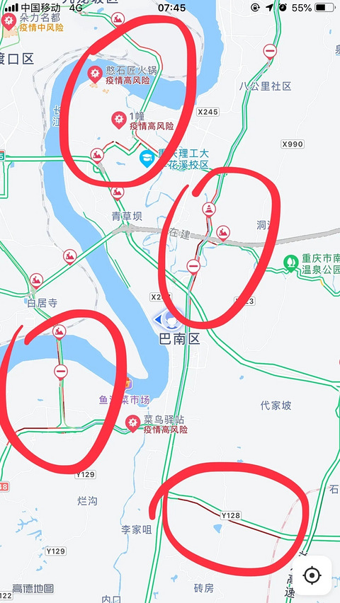 平时回家40分钟的路,今天开了2个小时,知道路段中梁山隧道、大学城隧道,九龙坡区,滨江路等等都在堵,比周五还老火