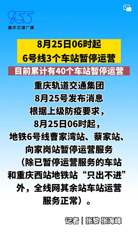 目前重庆有40个轨道交通站点停运,大量公交线路停运或者改变路线