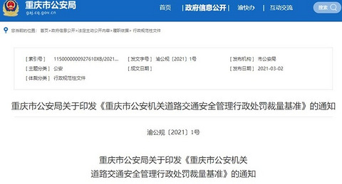 重庆发布新版交通管理行政处罚裁量基准,多项违规罚款调整