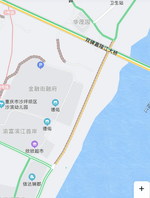 6月28日傍晚,才通车的沙滨路磁器口古镇—井双新城路段,已经遭遇了一场有一点点堵车的晚高峰吗?!大家觉得,再过几个月,磁器口古镇到石门大桥这一段的沙滨路,会不会变得常态化拥堵呢?! 嗯,以前,沙滨路,到了磁器口古镇就变成了断头路……可是,现在从石门大桥的沙滨路,可以沿着沙滨路,一直驱车达到双碑!6月28日,晚高峰,依然是磁器口古镇的童家桥正街严重拥堵…… 磁器口到双碑的沙滨路,只是小部分呈现黄色拥