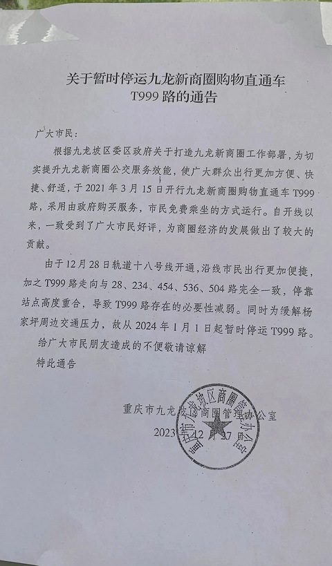 杨家坪地区的免费公交T999,终于退出了历史舞台