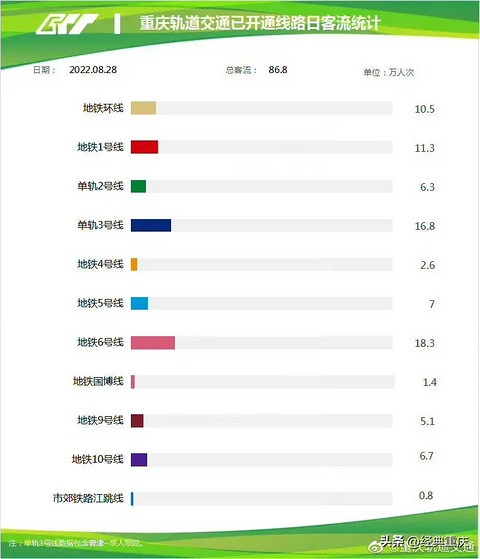 重庆轨道交通客流量仅86.8万人次,为2020年2月以来最低