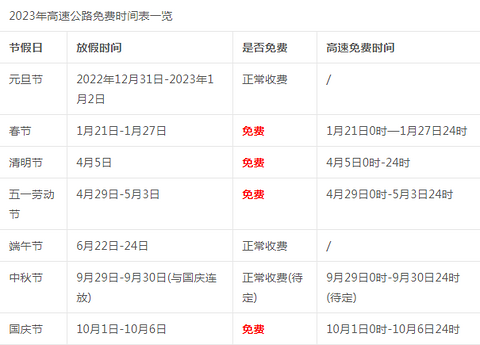 2023清明节高速公路免费吗?今年清明节高速公路免费,4月5日0时-4月5日24时,共1天。根据《重大节假日免收小型客车通行费实施方案》来看,收费公路免费通行时间为春节、清明节、劳动节、国庆节,共4个国家法定节假日以及当年国务院办公厅文件确定的上述法定节假日连休日。所以元旦节、端午节、中秋节均属于高速收费范围。 2023清明节高速公路免费吗?高速免费通行。