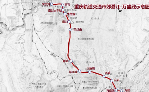 看看最清晰的重庆轨道交通市郊綦江-万盛线。 本项目起于轻轨3号线学堂湾站,至于万盛站。 估计明年开工。 这样綦江和万盛一下子就拉近了与主城间的距离。 毕竟渝贵客专停靠綦江的班次还不是很多。 而且也照顾不到万盛的客流。 轨道交通市郊綦江-万盛线的建设肯定一下就会盘活綦万片区的发展。 期待市郊綦万线早日落地