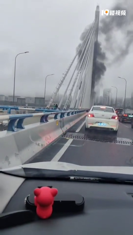 今早双碑大桥上往大学城方向一辆SUV自燃?车辆已烧得剩下骨架