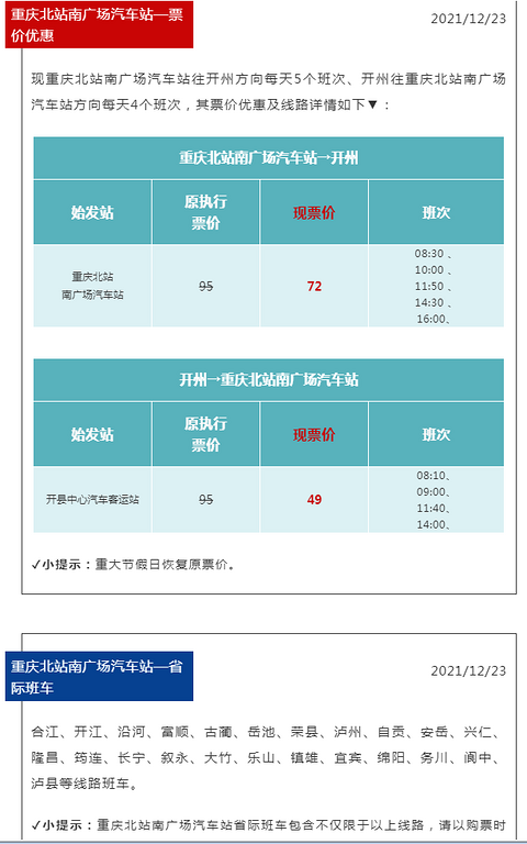 今天在重庆汽车客运售票网 www.96096kp.com 和”愉客行重庆公路客运售票网”微信公众号看到的,为了和火车竞争,长途汽车票价优惠了不少,尤其是超长线路,大巴车票价远远低于高铁。比如重庆到南宁、北海、厦门、海口、三亚、青岛、烟台、大理、丽江,大巴车挺方便的。。我特别喜欢坐长途汽车出游,一来可以随到随走,二来可以携带宠物,因为大巴车都是可以带宠物的,,。