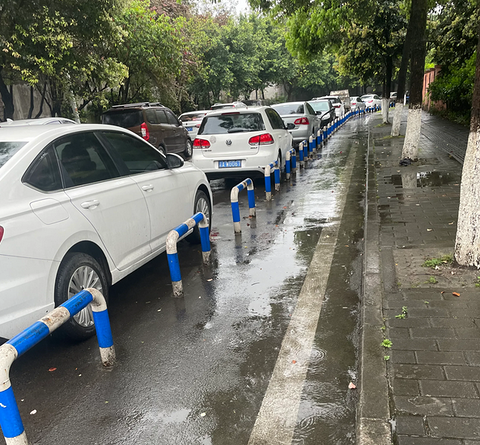 这条街周围根本找不到停车位,这条街上每天都这样停满了车。不是说存在的就是合理的,而是说要合利用公共基础设施。既然每天都这样,为啥不合理利用呢?像这条街道,是否可以把附图中的挡杆撤除,直接划为停车位呢?比如考虑将挡杆设置在路边沿,只要挡住不让车停到人行道上就可以了。 现在基础设施跟不上发展形势的问题在许多地方都不同程度地存在,如何在现有条件下合理利用基础设施,这是一个值得思考的问题。方便老百姓,让城