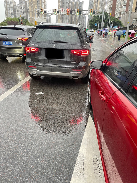 就想问一下,这个是谁的责任。早上出门看了一下还在下雨就开车去公司,走到半路上碰到倒霉的事,又下雨天。当时大家都在排队通过红绿灯,黑车当时在我后面,我车前叶子板遭