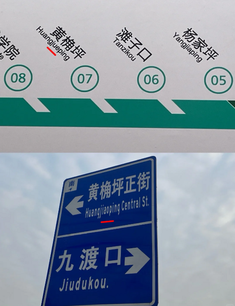 黄桷坪18号线站名和公路边的指示牌显示的是两种拼音,到底怎么念