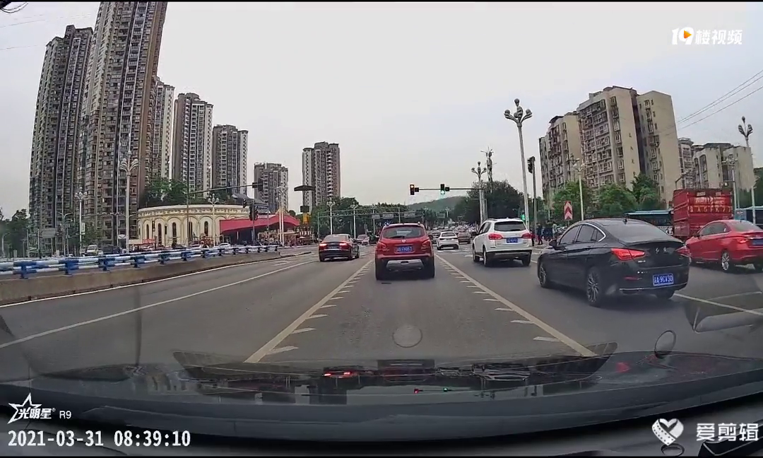 大家可以看一下这个红旗的风骚走位,是不是可以举报他危险驾驶哦?