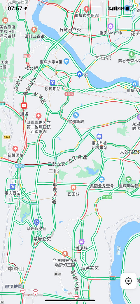 鹅公岩大桥北桥头匝道封闭,目前杨家坪区域车流量大