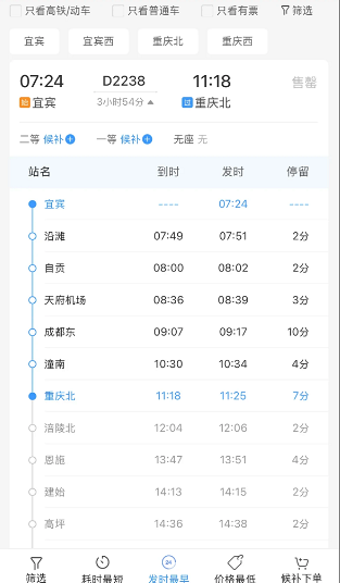1.泸州,原来到重庆没铁路,现在高铁直达最快的一班仅需30分钟! 2.宜宾,宜宾到重庆,要先到天府机场、成都东去绕一大圈,耗时近4小时,开通后一下缩短到仅需48分钟! 3.自贡,从时刻表上看,自贡还没有首发站到重庆的高铁,都是停靠站,但想必与过去比,到重庆的时间也会大大缩短,因为不必再去成都绕了。 这简直是天翻地覆的变化