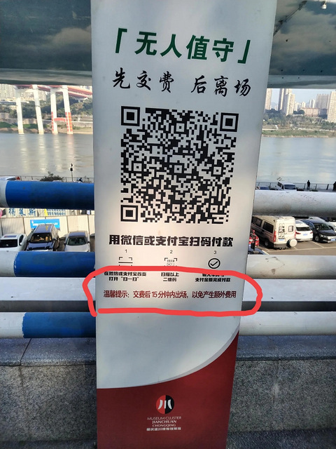 重庆九龙坡区建川博物馆,是个参观的好地方,仅仅是车辆出入口收费的地方,在上面停了19分钟,收费6元,因为无人值守,要出来只有规规矩矩缴费,怎么肥事呢? 后来在下面166军舰参观处了解到,原来上面参观的地方出入口收费标准:15分钟内免费进出,超过15分钟,收费6元,无论停多久,这个收费很nice啊! 关键坑爹的地方是,他没有标注,只写了15分钟以内免费,也没说15分钟以上怎么收费。 我们今天是团体参