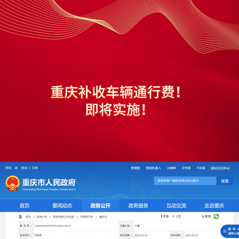 重庆补收车辆通行费!即将实施! 重庆市发布《重庆市高速公路管理办法》,将于2023年11月1日起正式施行。车辆通行高速公路有下列情形之一的,按照国家收费公路联网收费运营和服务有关规定补收车辆通行费: ·一、无通行卡的; ·二、持调换或者伪造的通行卡的; ·三、故意损坏、屏蔽通行卡或者干扰收费系统、设施的; ·四、假冒享受通行费减免政策车辆的; ·五、采取其他方式偷逃通行费的,对依法应当交纳而拒交、