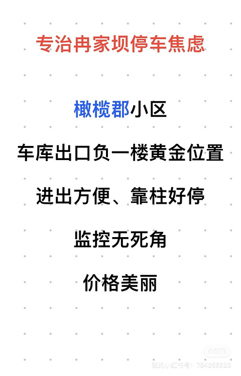 专治冉家坝停车焦虑 北环 橄榄郡车位