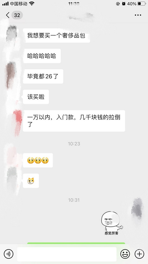 在知乎上看到的 女生26岁了想买一个入门级的奢侈品包包,男生拒绝了,觉得现目前经济情况并不允许买这么贵的包包,满足不了不了女朋友的虚荣心 聊天截图如下