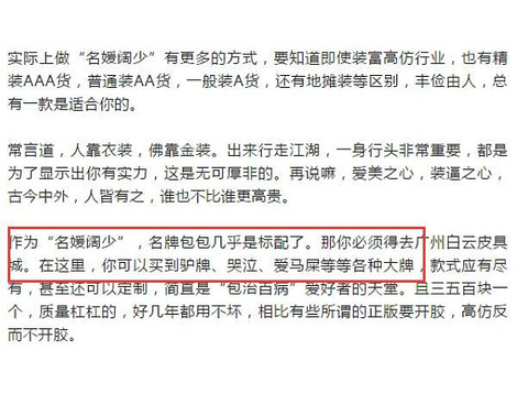 “名媛阔少”背后高仿装富产业链有感,你们平时会买高仿名牌包吗