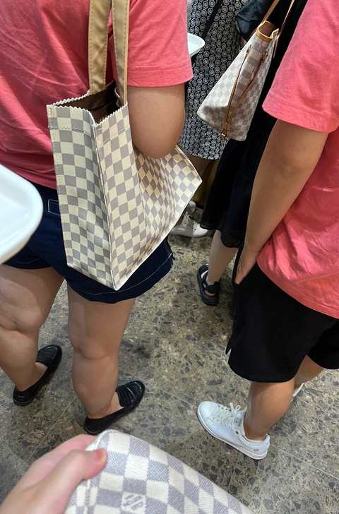 一抬头发现全是棋盘格,咱就是说一个无语果然包包不能买太热门的,买的时候有多难买,背的时候就有多撞包。。。