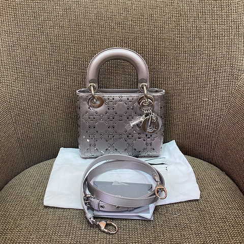 Lady Dior 大概是每个女生都会喜欢的一款包吧~经典优雅 永不过时这款整个是丝绸缎面质地的~高级的银灰色,加入天配的水钻~绝绝子~简直太闪了!!!提着它炸街的好嘛[ej=1F973]宝子们心动了吗